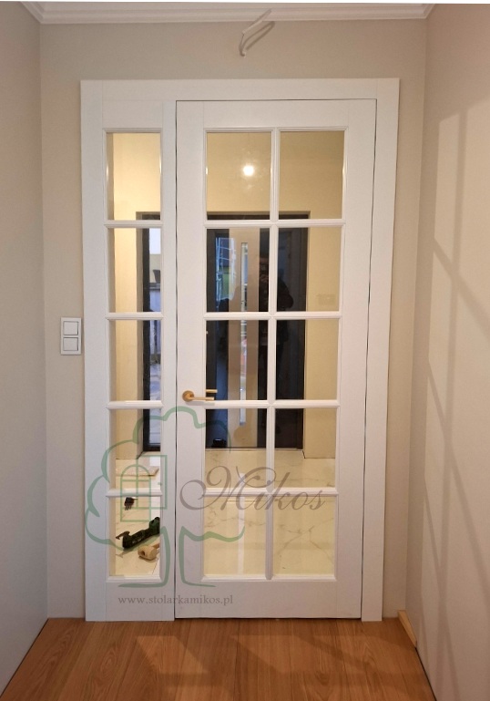 drzwi białe z szeroką dostawką i naświetlem drewniane zosia
