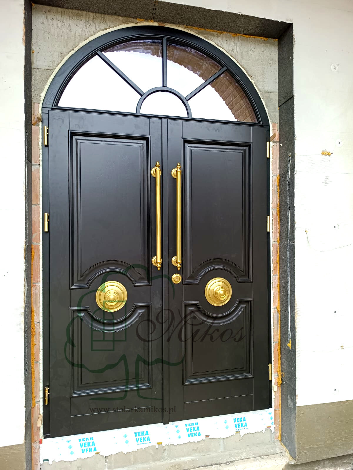 Drzwi dwuskrzydłowe ALEKSANDER z mosiężną rozetą (RAL 7021)