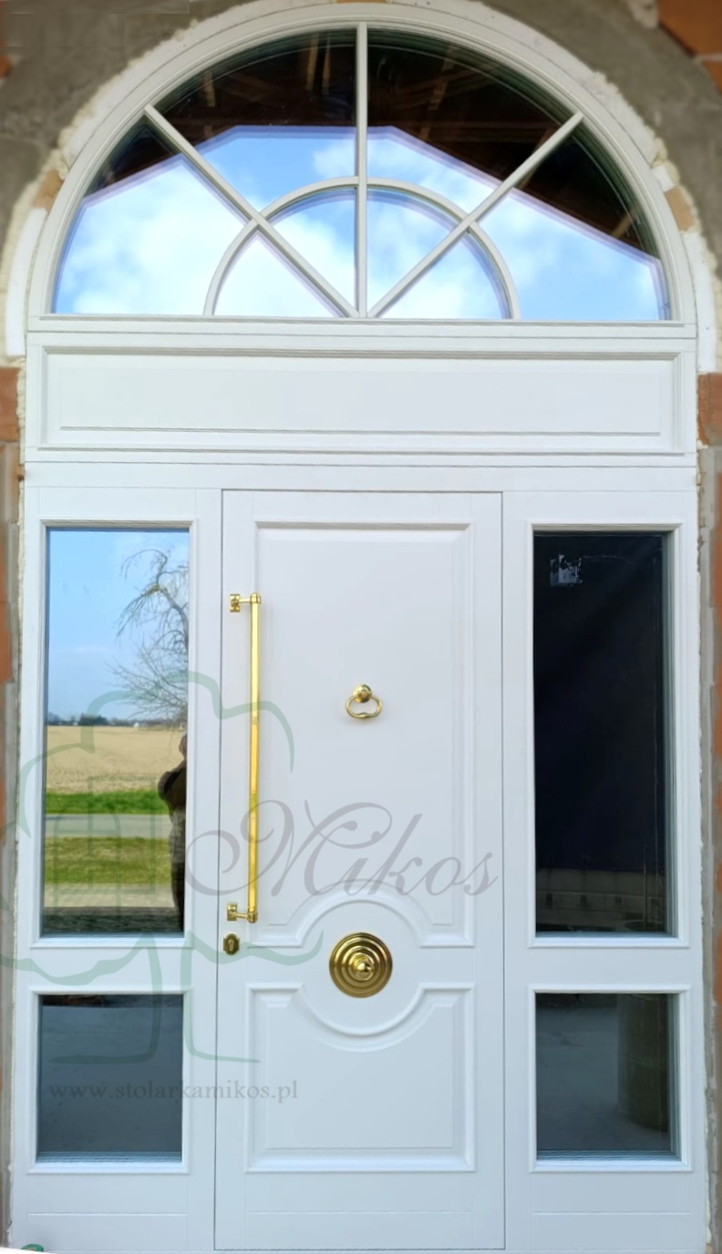 Drzwi zewnętrzne TOMASZ z dostawkami i naświetlem w łuku